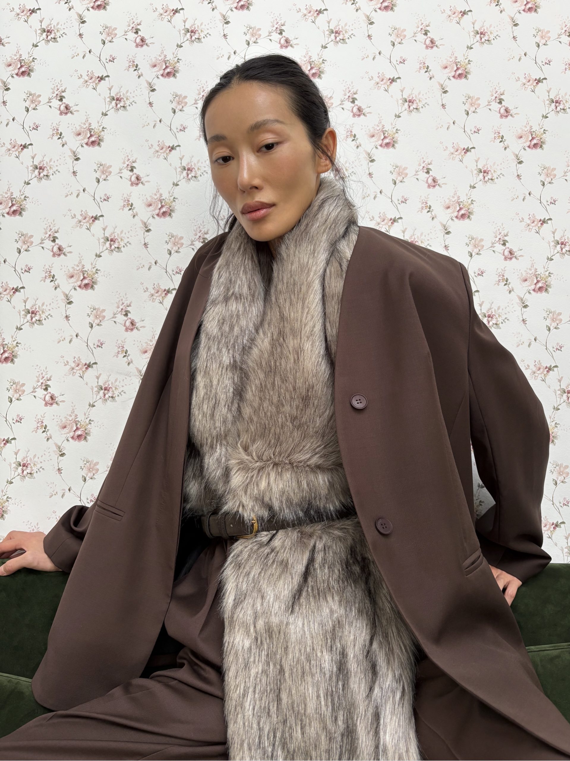 43900 ₽Пальто Shadow выполнено из плотной пальтовой шерсти в глубоком коричневом оттенке. Пальто свободного кроя, в длине макси, с расширенной линией плеча, двубортное, застегивается на две пуговицы. Имеет съемный воротник из экомеха. Пальто возможно приталить с помощью пояса. Параметры модели: рост — 175 см, обхват груди — 83 см, обхват талии […]