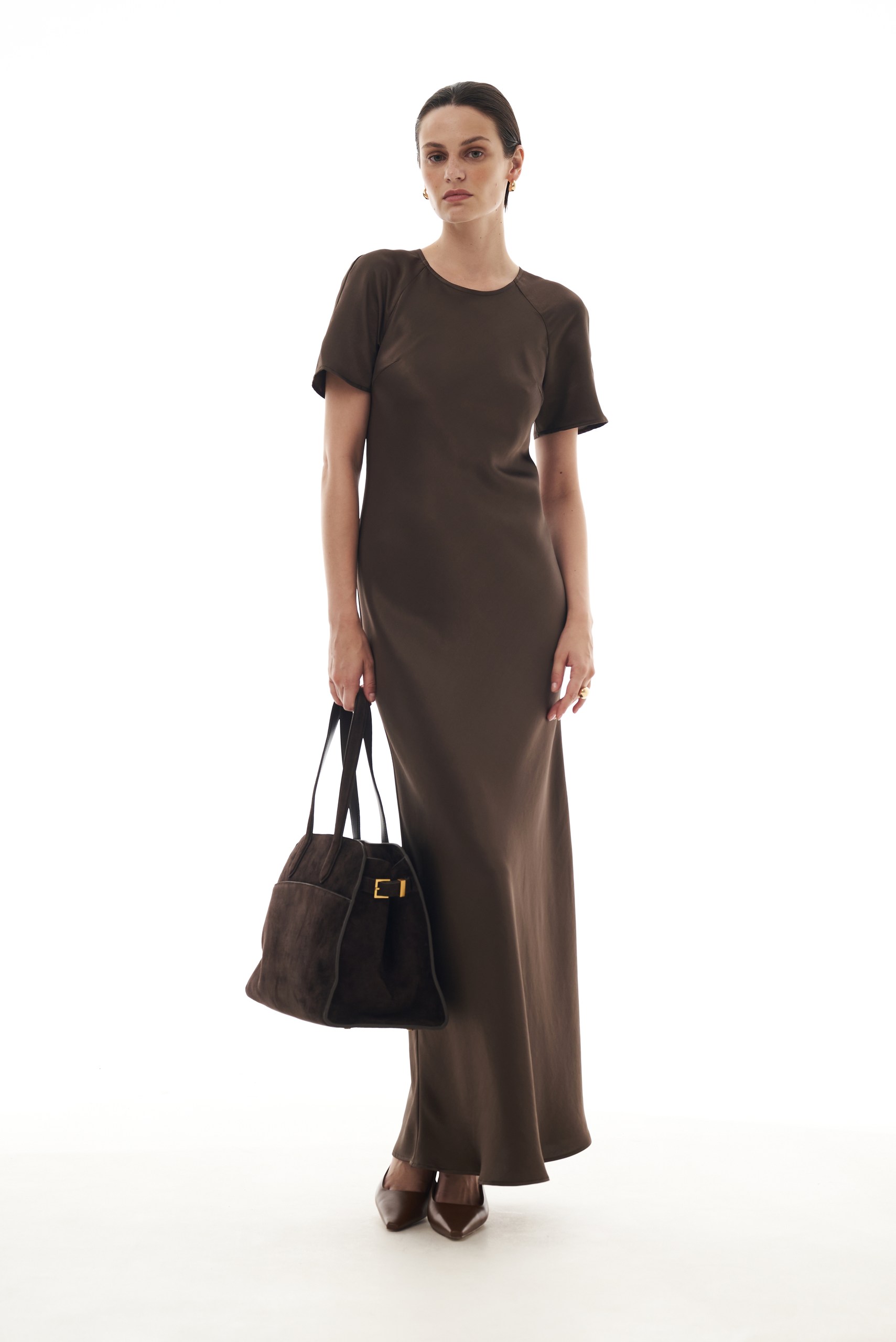 Элегантное платье “Dot” полуприлегаюшего силута, с рукавом реглан и нагрудными вытачками. Сдержанное, утонченное платье в блогородном шоколадным оттенком станет идеальным вариантом для вечерней прогулки. Параметры модели: рост — 175 см, обхват груди — 78 см, обхват талии — 60 см, объём бёдер — 87 см. На модели размер S.
