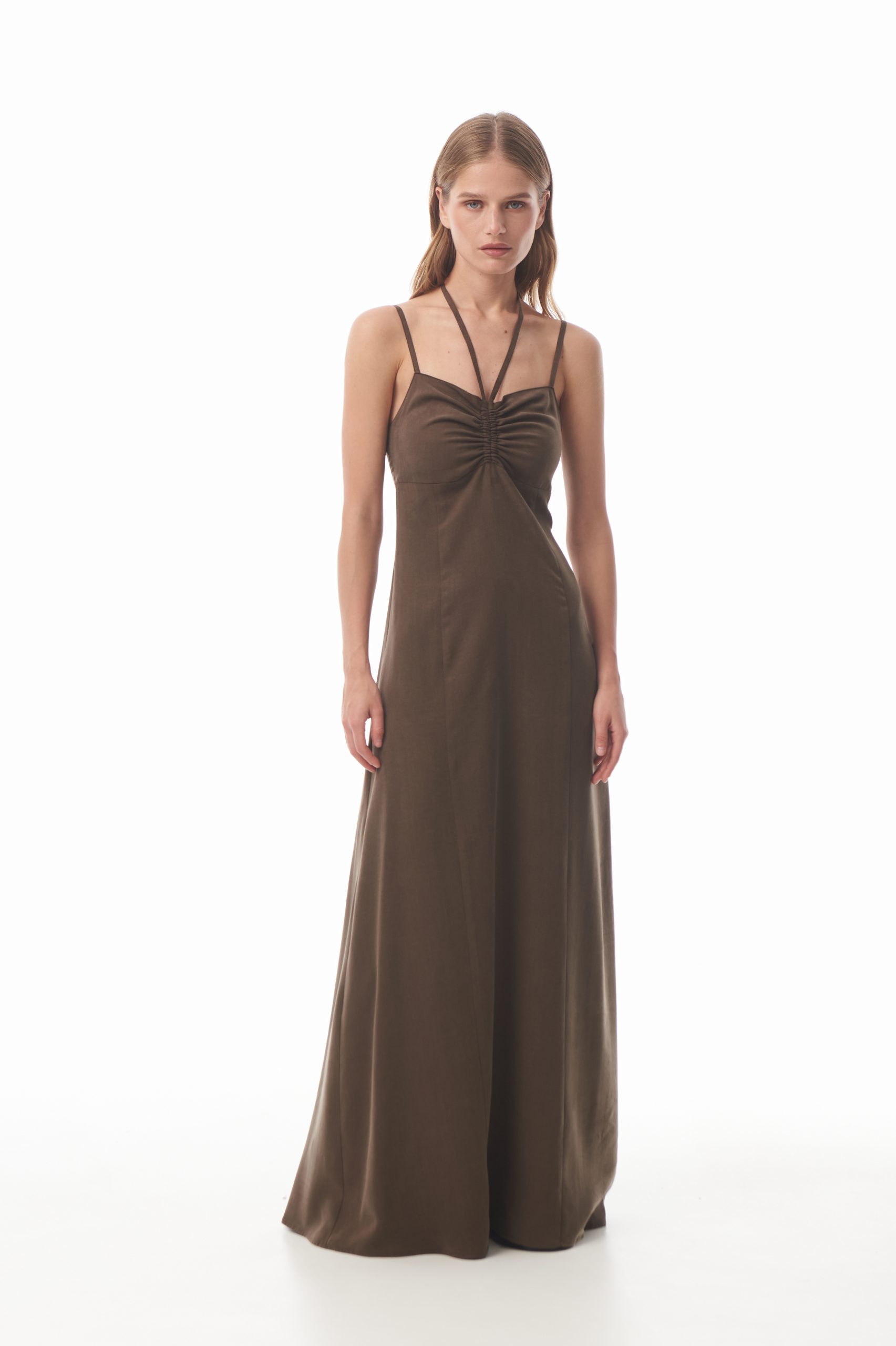 Платье «Sunshine» полуприлегающего силуэта малого объема. Отрезное под грудью, юбка с клиньями, длиной макси. Передняя полочка лифа с кулиской по центру. Застежка в среднем шве спинки на потайную молнию. Изделие выполнено из нежнейшего тенселя, приятного к телу. Утонченная, романтичная модель платья идеально подойдет как для легких летних прогулок, так и для вечерних, праздничных случаев. Параметры модели: рост — 175 см, обхват груди — 83 см, обхват талии — 58 см, объём бёдер — 89 см. На модели размер S.
