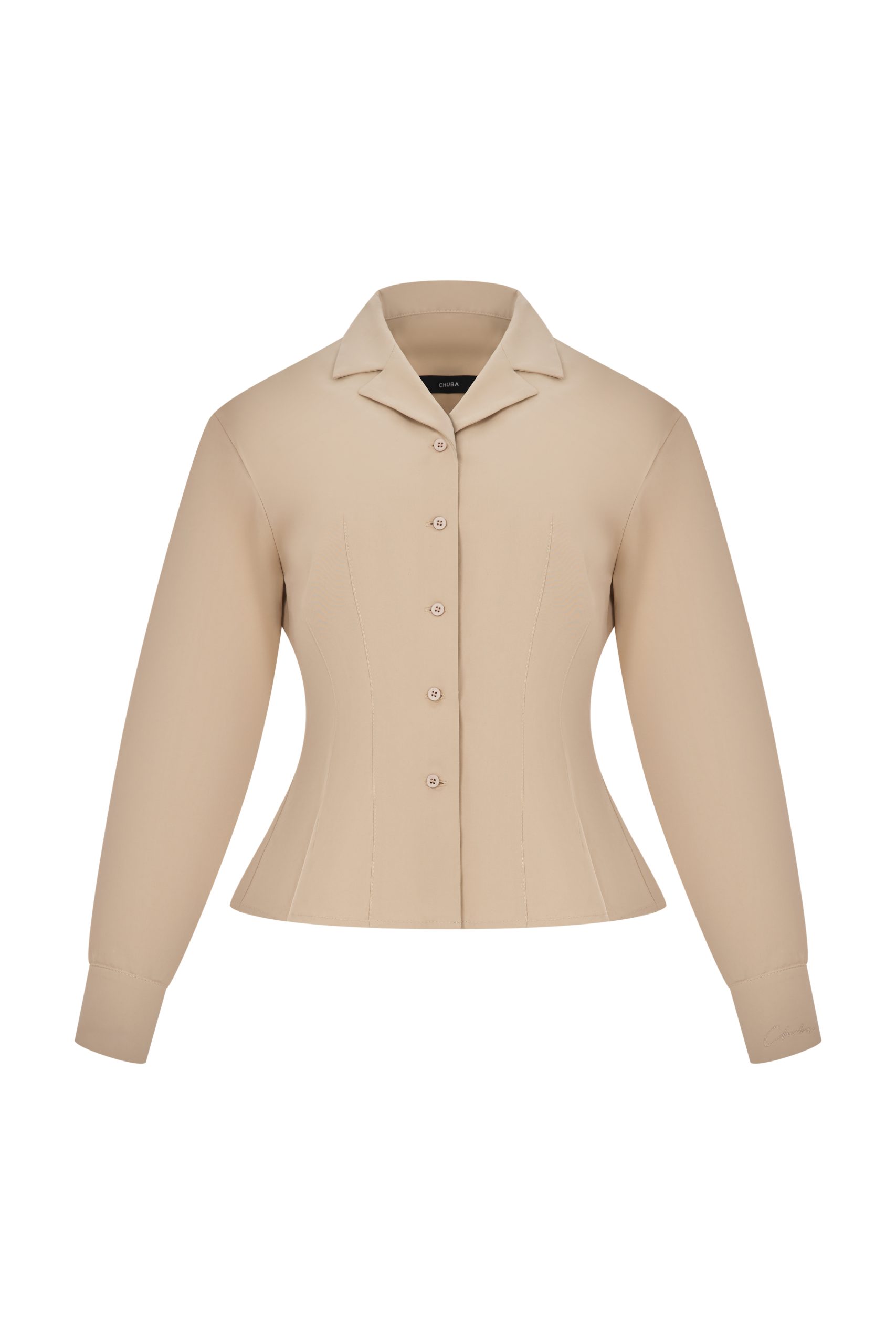 Рубашка “Woman” полуприлегающего силуэта с лацканами, длиной до линии бедер. Застежка центральная на 7 обметанных петель и 7 пуговиц. Передняя полочка с рельфамными швами. Спинка со средним швом и рельефными швами. Рукав втачной, низ рукава обработан манжетой с застежкой на 1 обметанную петлю и 1 пуговицу. На левой манжете расположена вышивка в цвет основной ткани. Параметры модели: Рост 178, Обхват груди 84, Талия 59, Бедра 88
