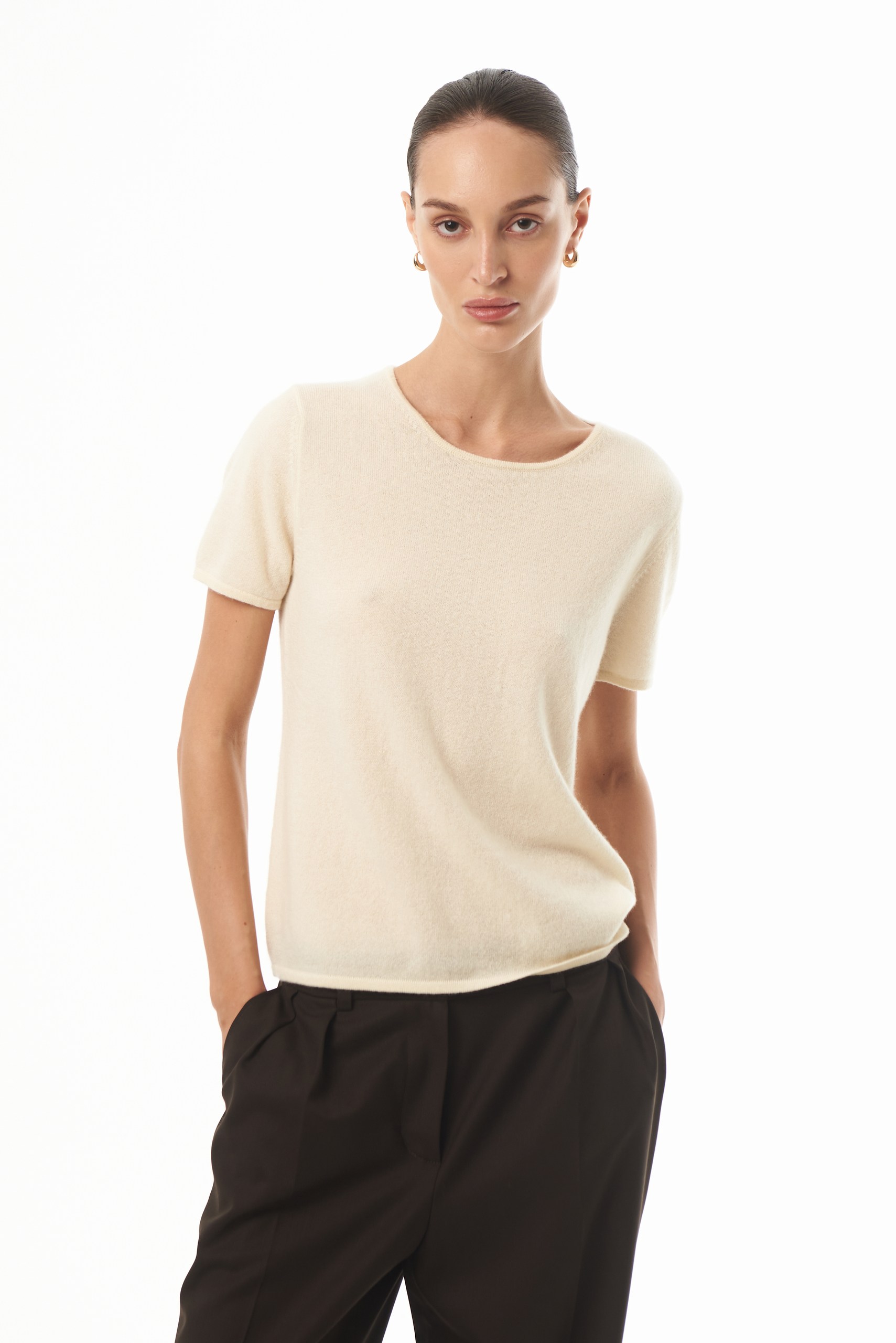 Свободная модель с круглым вырезом и удлиненным рукавом, выполненная из нежнейшего 100% кашемира.